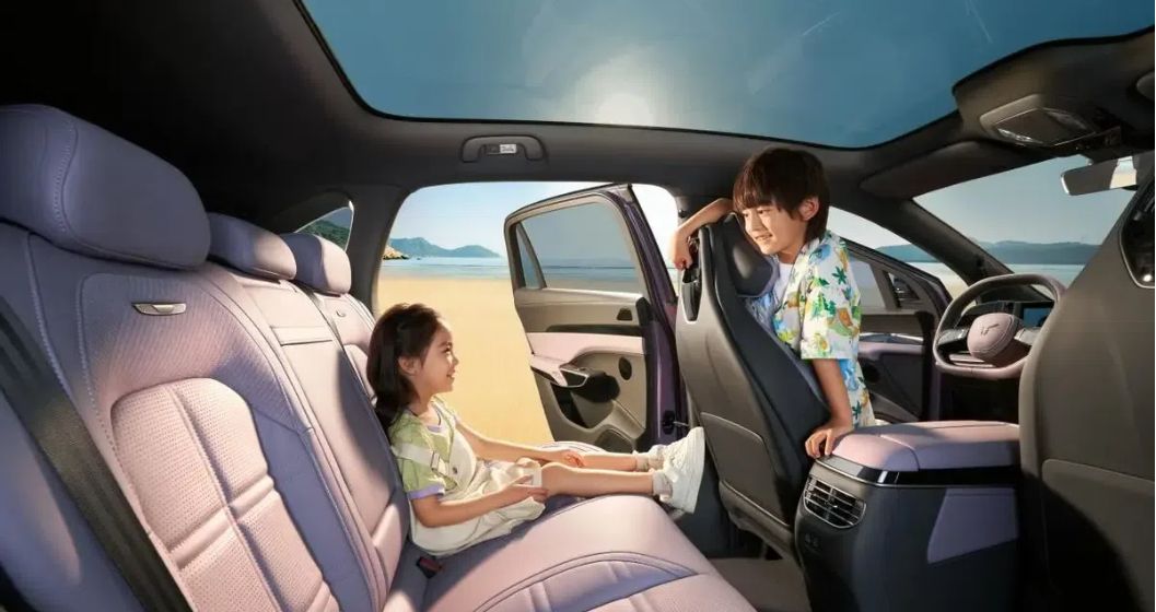 In terms of the cockpit, the entire Tiangong 08 series adopts a 5-seat layout. The center console is equipped with an LCD instrument panel and a whole screen connected to the multimedia display screen, which is wrapped in leather and decorated with wood grain panels. The car cancels the traditional inner physical door handle and uses a button-type inner door opening method. It also designs a mobile phone wireless charging area and a hollow storage space below the auxiliary instrument panel area.